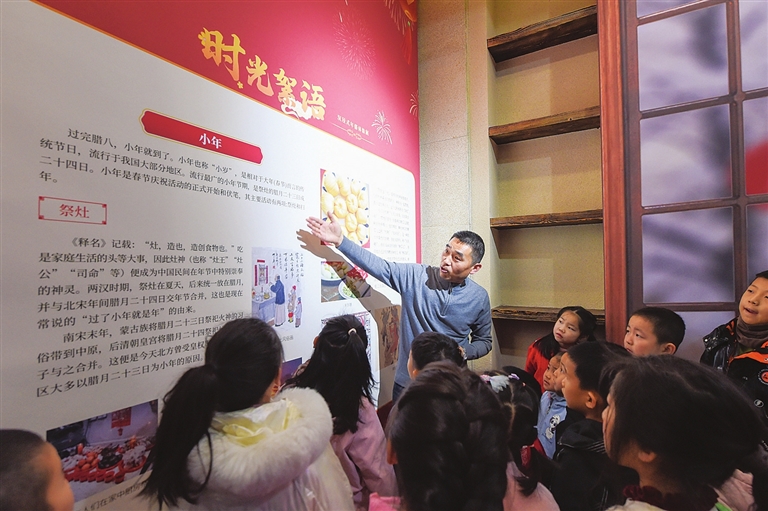 2月10日,在长春市图书馆,民俗老师为小朋友们讲述“小年”的故事。