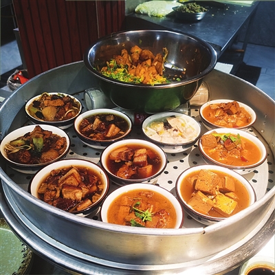 20世纪50年代,太原年俗饮食格局渐变。由于国营菜市场除夕下午休市,正月初二部分营业、初六方复常,这一作息助推了“辞岁饭”向“年夜饭”演进。随着时代前进,祭祀繁仪趋简,但馂鸡块祭后方食、年前腌压猪头肉、炸油糕、蒸“碗子双宝”的老规矩仍被多数家庭坚守。除夕游子归乡,全家围炉,辞岁便饭渐添荤腥、丰品类,蒸烧肉与清蒸丸子成为餐桌上的“硬菜”,彰显日子越过越富足。20世纪八九十年代,并州饭店、清和元等老字号迎合市场需求,推出了“除夕团圆宴”预订服务,辞岁饭渐演变为团圆盛筵,成为家人齐聚一堂的幸福载体。
