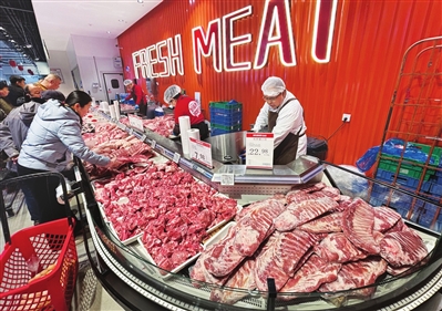 2月12日,省城凯旋街一家超市内商品品种繁多,前来采购的市民络绎不绝。春节将至,我市粮油、肉类、蛋奶、果蔬等年货供应充足,价格稳定。邓寅明 摄