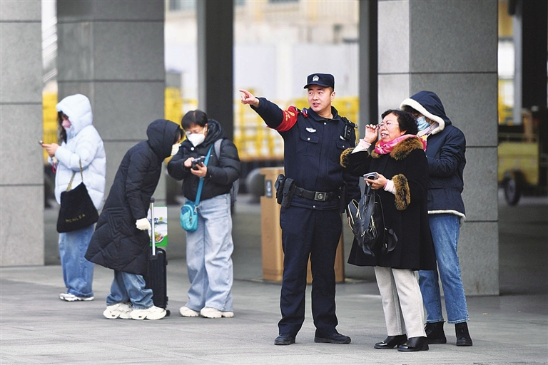 2月16日,太原铁路公安局太原公安处太原站派出所民警坚守岗位,全力维护春运安全,热情服务出行群众。 邓寅明 摄
