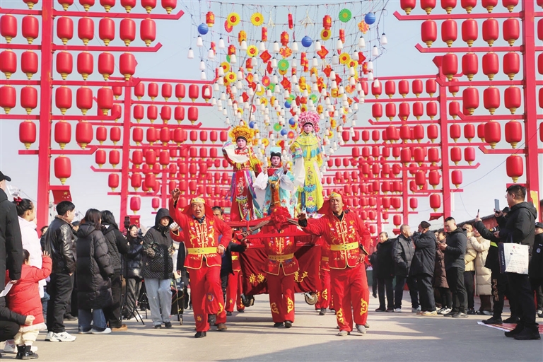 2月17日,2026第五届小店区刘家堡村“堡里有年味 回村过大年”春节民俗活动开幕。背棍、舞狮、舞龙等表演精彩纷呈,吸引众多游人前来观赏。张昊宇 摄