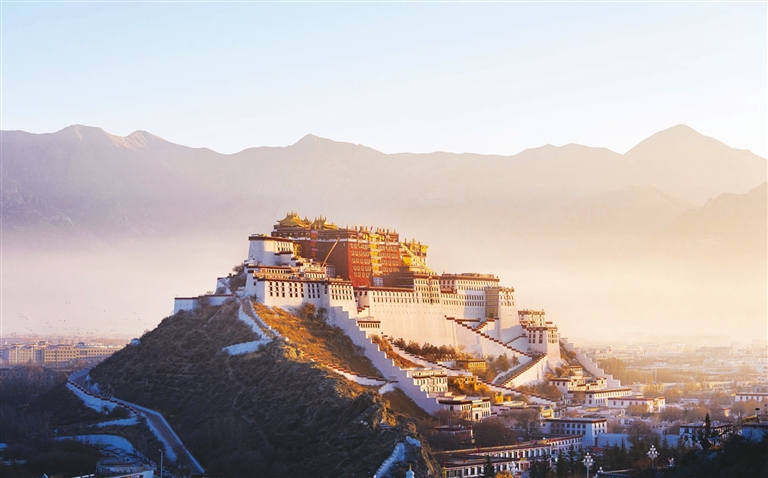 2月18日是农历春节大年初二,也是藏历新年大年初一。布达拉宫在新年晨光照耀下熠熠生辉。新华社记者 丁增尼达 摄