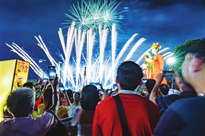 2月15日,民众在新加坡滨海湾花园举行的“春到河畔”春节庆祝活动上观赏烟花表演。新华社发 (邓智炜 摄)