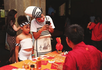 2月13日,在位于南非比勒陀利亚的南非国家剧院,人们体验中国文化。新华社记者 陈 为 摄