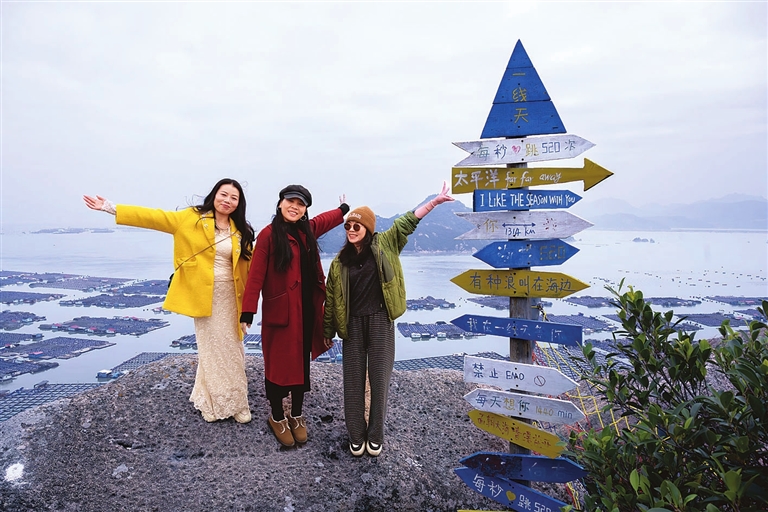 二月十九日,游客在福建省罗源县鉴江镇一处景点打卡留影。