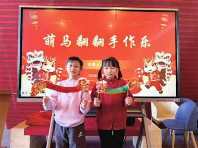 新春系列主题社教活动,引领青少年深入了解传统文化,正月初二上午,“萌马翻翻手作乐”活动吸引了不少孩子报名参与,通过趣味手工,孩子们在玩乐中学习知识。正月初三开展的“黏土塑马贺新岁”活动同样备受关注,孩子们围坐一堂,认真聆听关于马的生肖故事与年俗传统文化。随后,一双双小手将五彩的黏土揉捏、塑形,一匹匹栩栩如生、形态各异的“小马”在孩子们手中诞生。一位小朋友兴奋地向妈妈展示自己的作品,“这是我捏的带着翅膀的飞马,祝大家马到成功。”竹编、掐丝珐琅等非遗手作体验,也让传统技艺在新春佳节焕发新生。