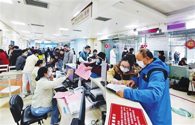 诊区内脚步匆匆,问询声、呼叫声此起彼伏。导诊台前,各地口音交织。一名年轻人在预检分诊护理人员协助下顺利完成挂号。