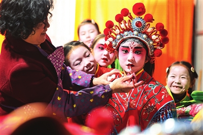 2月21日,在甘肃省静宁县李店镇五方河村,社火队员在为表演做准备。