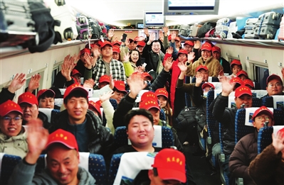2月24日,西安市2026年“春风行动”赴苏州太仓务工人员“点对点”列车发车,82名来自陕西省西安市周至县的务工人员,在西安、苏州人社部门的帮助下,免费搭乘G1922次列车,前往江苏省苏州市太仓市,奔赴各自岗位开工。