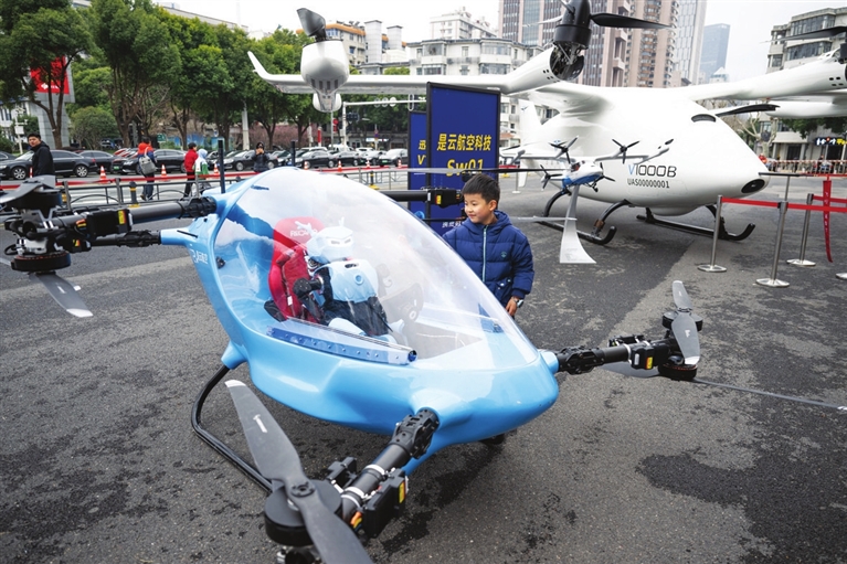 2月24日,湖北自主研制的多款eVTOL(电动垂直起降飞行器)航空器以及人形机器人在“全省加快建成中部地区崛起的重要战略支点推进大会”上亮相。新华社记者 肖艺九 摄