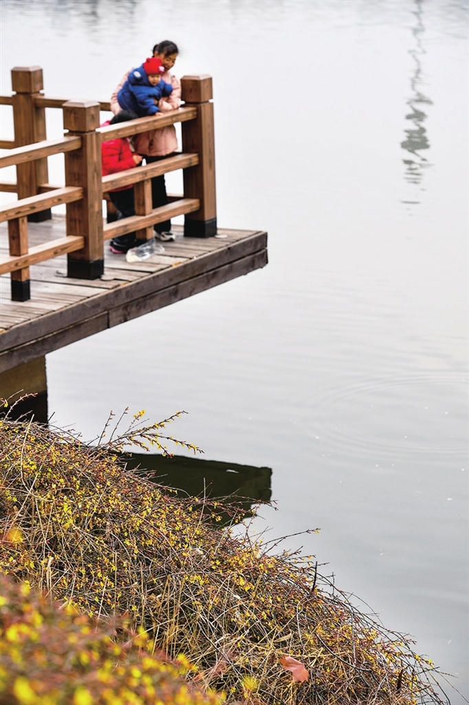 2月26日,学府公园湖边的迎春花绽放,吐露出朵朵嫩黄的小花,一片春意。牛利敏 摄