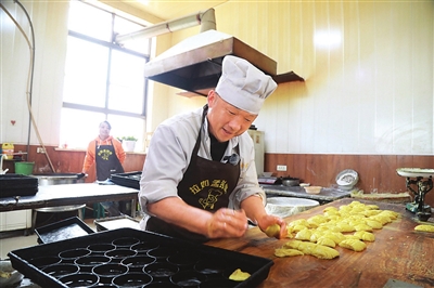 面团加碱、二次醒发,再铺开、抹酥、卷起、切段、揉圆,赵永冬手下不停。撒上芝麻的饼坯整齐码进预热好的烤箱,十几分钟后,金黄酥香的孟封饼新鲜出炉,香气勾得等候的顾客直抿嘴。“最近一天能做3000多个,订晚了真没有,想多做也赶不出来。”正说着,一位熟客推门进来,直接提走十几盒礼盒装:“就认这个老味道。”