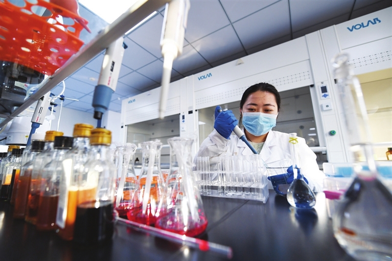 3月10日,紫林醋业食醋发酵科学与工程山西省重点实验室内,工作人员采用先进分析检测仪器进行实验。该实验室不断完善项目检验的硬件条件,加快研发进度,推动食醋产业高质量发展。邓寅明 摄
