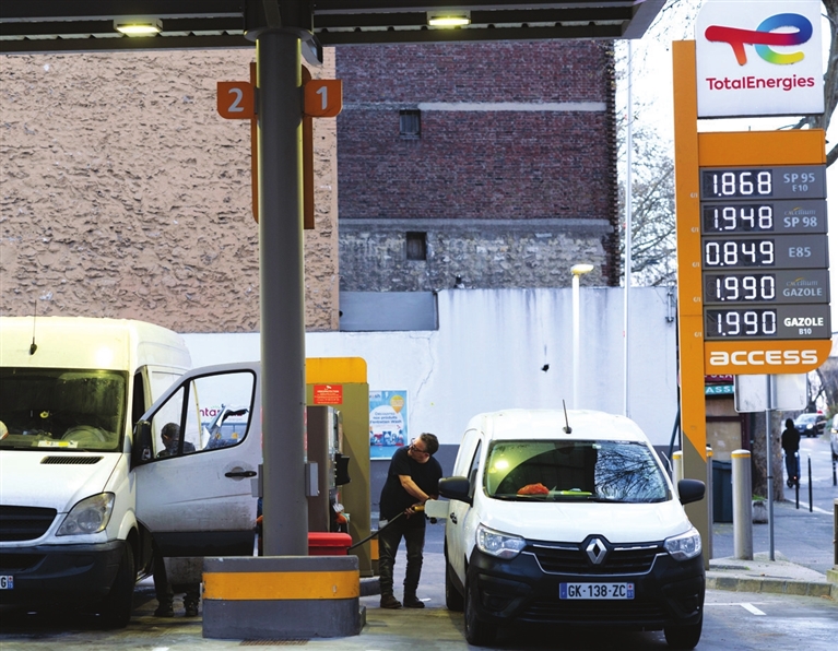 3月9日,车辆在法国巴黎的加油站排队加油。