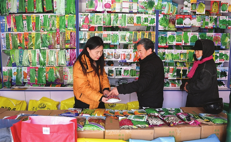 赵强告诉记者,今年备了80多万元的货,光蔬菜种子就有100多种,豆角种子占了30余种,“周边农户种豆角的多,各种颜色、各种成熟期的都备齐了。”赵强说,店里所有种子都是从天津蓟宏、北京中农斯达等业内标杆企业直采,质量可追溯,农户买回去放心。