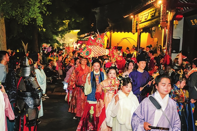 ——多元场景拓展消费空间。汉服销售不仅是卖服饰,更是“输出”生活方式。西塘旅游休闲度假区管委会副主任汪建明介绍,近年来,西塘将汉服元素与婚庆、研学、茶道等古镇旅游场景深度融合,推出“汉服+旅拍”“汉服+品茗”“汉服+游船”等体验活动,探索汉服实景剧、剧本娱乐大赛、花船巡游等全新玩法,目前已招引培育汉服类商户110余家,2025年实现汉服类营收逾2500万元。