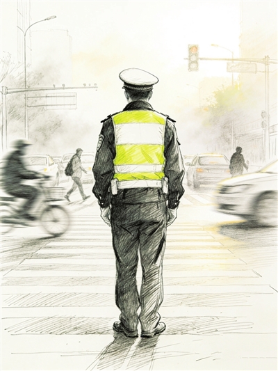 我站岗的一个小时里,看到的不仅是有序的交通,也看到了一个城市温暖的底色。交警在车流中守护城市秩序,环卫工在寒风中守护城市容颜,普通市民在规则中守护城市文明。他们没有惊天动地的壮举,也没有聚光灯照耀,却用日复一日的坚持,让这座城市更有秩序、更有温度、更有质感。