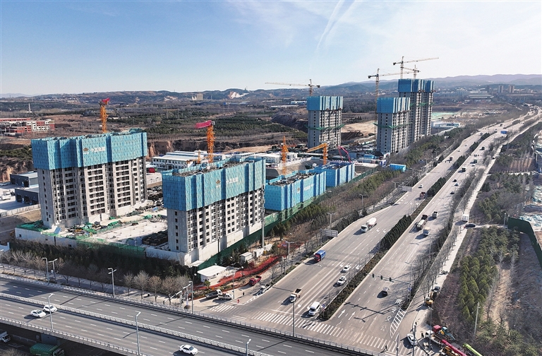 3月18日,杏花岭区柏杨树城中村改造项目正在施工中。该项目位于丈子头街,共5栋高层住宅。目前,整体建设进度达50%。张昊宇 摄
