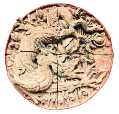 元代的琉璃匠人,将陶土反复捶打,入窑时用还原焰烧出琉璃的剔透,再以氧化焰定色,让釉料与胎体熔成一体。元代是中国琉璃工艺的转折期,此前的琉璃多为小件饰品,元代则将其大规模用于建筑装饰,窦大夫祠的团龙便是这一变革的实证。这四枚琉璃团龙胎体厚重,直径近一米,如此大尺寸的构件,需要精准把控窑温与胎体的收缩率,稍有不慎便会开裂变形。而这四尊团龙虽有残损,却整体完整,足见元代匠人技艺的精湛。更难得的是,团龙的造型打破了传统龙纹的对称范式,龙身的盘绕并非刻板的圆形,而是带着动态的扭曲,云纹也并非规整的卷云,而是如浪涛般翻涌,这与元代绘画中“逸笔草草”的审美一脉相承。