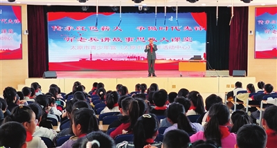 3月20日,由市青少年宫主办的“传承红色薪火 争做时代先锋”听老兵讲故事思政大课堂活动在杏花岭区实验小学开讲。图为山西省军队离退休干部休养所红星宣讲员车瑞金作主题宣讲。牛利敏 摄