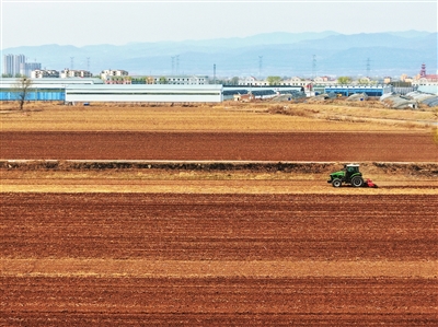 3月23日,在小店区同过村的2700余亩土地上,农户操作拖拉机进行旋耕作业,“春耕图”徐徐铺展。王韵菲 摄