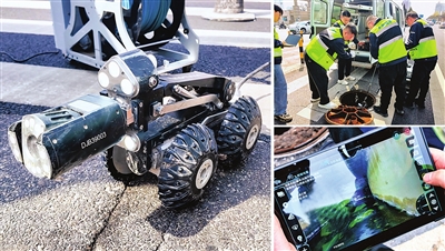 3月24日,市市政建管中心的工作人员在尖草坪区北涧河排水口利用智能机器人进行排查。机器人深入管道内部,将管壁的破损、淤积情况实时传回地面,为技术人员精准评估提供数据保障。牛利敏 杨 斌 摄影报道