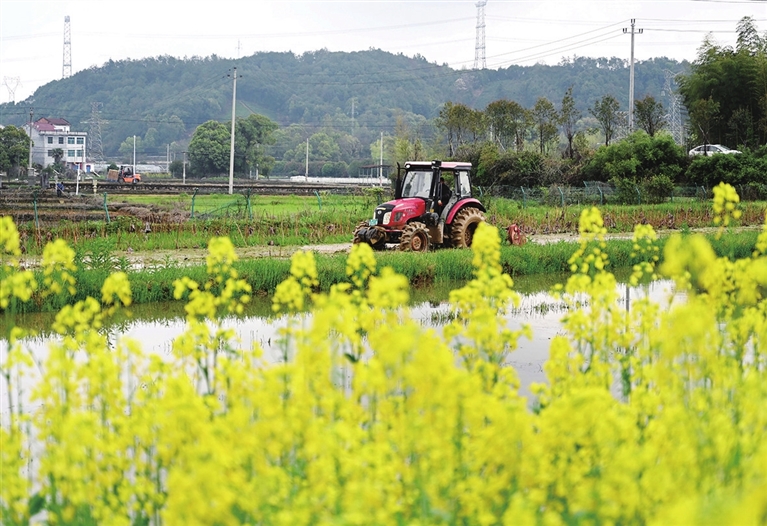 3月25日,浙江省金华市武义县王宅镇仁村农民驾驶农机翻耕水田,准备插种早稻。时下正值春季农事关键期,各地农民抢抓农时,开展春耕作业,田间地头一片忙碌景象。新华社发(张建成 摄)