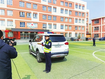 近日,太原市公安局交管支队宣传民警来到河北街小学,组织开展了2026年中小学春季开学交通安全互动体验课主题宣传活动,并拍摄制作了《知危险、会避险》交通安全公开课视频片。