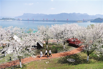 3月28日,孩子们在湖北省宜昌市秭归县屈原故里文化旅游区赏花游玩。新华社发 (王辉富 摄)