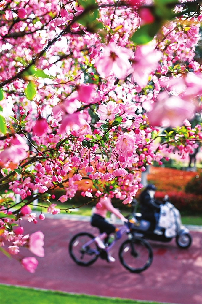 3月28日,人们在河南省商丘市日月湖景区绿道健身。新华社发 (李 恒 摄)