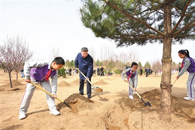 在京中共中央政治局委员、中央书记处书记、国务委员等参加植树活动。