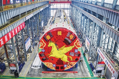 3月31日,由中国铁建打造的一台国产14米级超大直径盾构机“奋楫号”在江苏南通顺利下线,将被用于新建盐城经泰州无锡常州至宜兴高铁长江隧道工程。该工程是国内首条采用承插式管片的高铁盾构隧道,隧道的建设将推动我国超大直径水下盾构隧道向全智能建造时代迈进。新华社发 (刘 甲 摄)