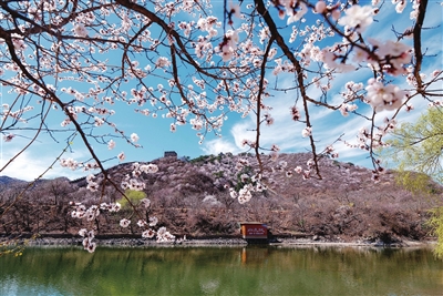 山花掩映的黄花城水长城(4月1日摄)。仲春时节,北京怀柔黄花城水长城边,山花竞相绽放,与长城交相辉映,构成一幅壮丽的春日画卷。新华社记者 陈晔华 摄