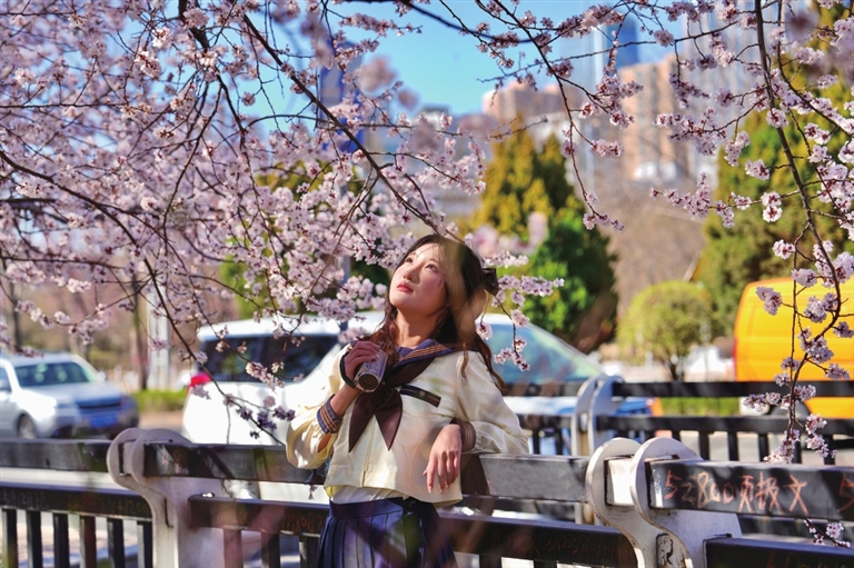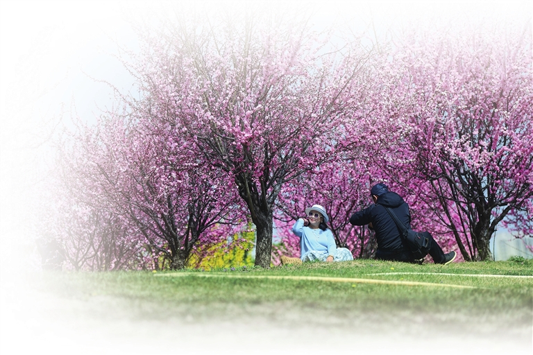 视线转向晋阳湖畔,桃花岛上的桃树已然进入盛花期,粉似霞、白如雪,花海与湖水相映,仿佛现实版的世外桃源。位于长风商务区一旁的谐园里,桃花在现代化的楼宇间绽放,为硬朗的城市天际线增添了一抹柔美。