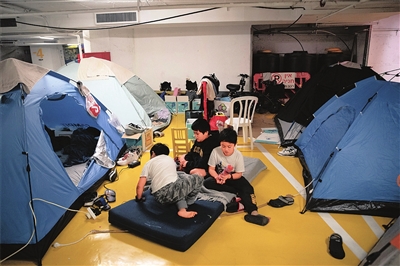 记者看到,一顶顶帐篷排列紧密,里面摆放着折叠床、毛毯、简易炊具等生活用品。大人们或低头刷着手机,或神情麻木中无所事事。孩子们则在有限的空间里追逐玩耍,笑声时有响起,却难掩这段非常时期的特殊印记——他们已经有40天没有走进学校了。