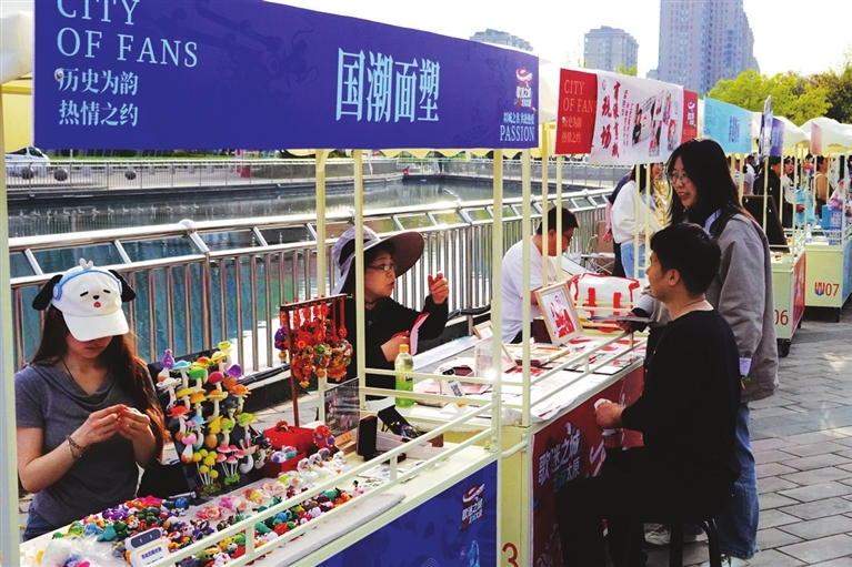 歌迷市集作为活动打卡点之一,三大非遗代表性项目尽显三晋匠心。山西肖像剪纸摊位前,传承人指尖翻飞,一把剪刀在红纸上游走,寥寥数刀就剪出歌迷专属人像;晋作国潮面塑展台旁,彩色面团经揉捏塑型,化作可爱玩偶、经典形象,引得围观歌迷连连惊叹;糖画摊位热气氤氲,匠人以勺为笔、融糖为墨,转瞬画出龙凤、小动物,甜香四溢,勾起满满童年回忆。文创好物类也独具特色,煤炭文创潮玩硬核别致,古建文创摆件浓缩千年匠艺,成为歌迷争相购买的伴手礼。