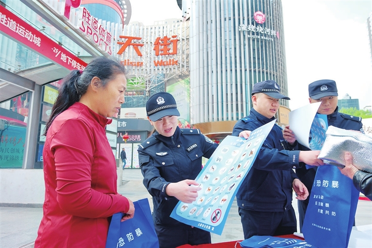 4月14日,太原市公安局迎泽分局桥东派出所联合迎泽区社区戒毒(康复)服务中心在辖区开展“4·15”全民国家安全教育日主题宣传活动。民警通过发放宣传资料、现场讲解等方式,向市民普及国家安全法律法规及防范知识,增强全民国家安全意识。王韵菲 王 伟 摄影报道