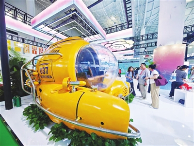 在国货精品展区重庆馆,一台黄色潜水器“鲛子”成为现场观众的热门打卡展品。这款民用载人观光潜水器已经在三亚大东海景区、亚龙湾景区等投用,由纯电力驱动,减少对海洋环境的污染。