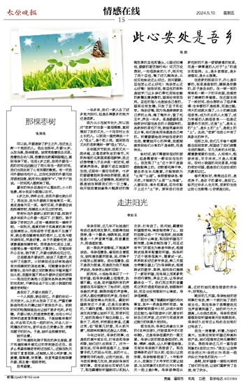在老家的那些日子,内心是平静的,饭菜是香甜的,睡眠是安稳的,孩子是自由的。在一粥一饭的简单和一朝一夕的平淡里,我感受到了满满的幸福感。在这里生活了一段时间,我也想明白了很多事情:生命要的不是结果,而是过程;伟大的成就太难了,小小的满足就很容易;成为杰出的人太难了,成为幸福的人就很容易……但是这里最吸引我的,还是“土”,是本土的“土”,是乡土的“土”,是故土的“土”。此刻,“老家”在我心中有了具象化的样子。