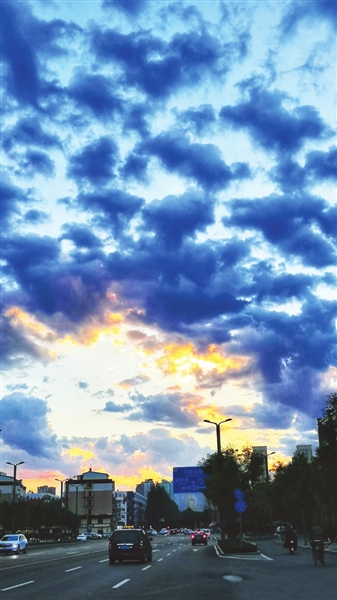 傍晚的太阳,似乎是一天中最成熟的,是经过了一整天酝酿后隆重捧出的佳酿,醇厚而热烈;晚霞扑朔迷离千变万化,刚刚还是红透半边天的火烧云,转瞬间又幻化出勾了金边的奔马。正在你想要细细品咂时,快马却已不知去向,只留下浓墨重彩的写意挂在那里。