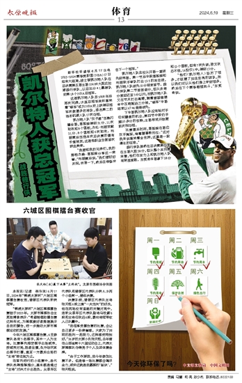 本报讯(记者 杨尔欣)6月17日,2024年“锦绣太原杯”六城区围棋擂台赛收官,晋源区代表队斩获冠军。“锦绣太原杯”六城区围棋擂台赛始于2023年。太原市围棋协会主席赵清俊表示:“希望能借助擂台赛这种形式,为围棋爱好者搭建展示自我的舞台,进一步推动太原市围棋运动的发展。”