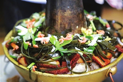 食材在相聚,人也在相聚。晋源人把对团聚的执念寄托在层层堆叠的火锅里。火锅如今也成了往来食客的必点菜。在寒冷的冬季,围坐一起,火锅配一碗晋祠大米饭或一碟精致小花卷,汤火慢炖,微烟轻起,一切美好都在此刻鲜活起来。