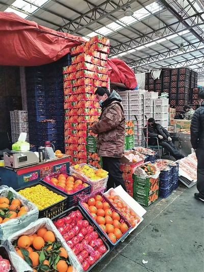 2月23日上午8时,河西农副产品批发市场已经是一片繁忙的景象。各种厢式大货车停成了排,问价的、带货的、打包的……各路客商纷至沓来,苹果、橙子、菠萝、豆角、黄瓜、西红柿、大白菜……各式水果蔬菜悉数进场,大车卸、小车拉,摊主们一边称重量,一边码新品,算账收钱一刻也不敢耽搁。一位多年经营蔬菜批发的老板一边忙着指挥工人搬运货物,一边说道,“你看,这些新鲜的菠菜、油菜,都是今天早上刚拉回来的,品质特别好,价格也很实惠”。在水果区,苹果、草莓、菠萝等水果堆成了小山,吸引了不少采购商和市民。“今年水果的品种特别丰富,价格也比往年更亲民。”一位采购商一边挑选着水果,一边说道,“现在市场人气这么旺,希望今年生意‘开门红’”。