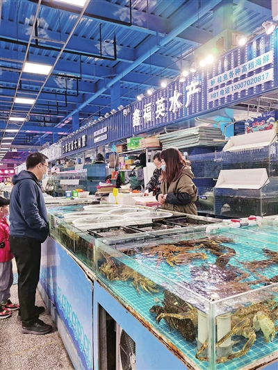 市民在海鲜批发市场挑选海产品。
