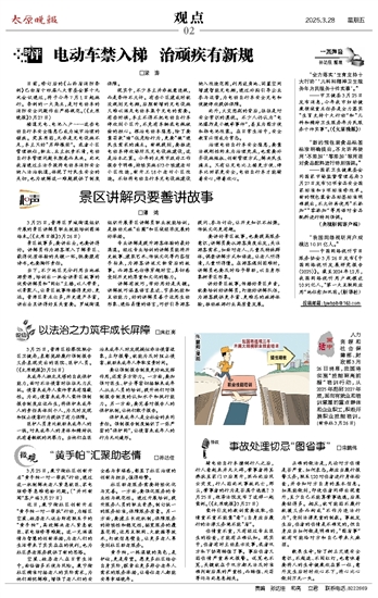 治理电动自行车安全隐患,要靠法规刚性约束为治理兜底,也需要补齐设施短板、创新管理方式,解决民生痛点。只有让充电比上楼更方便、停车比回家更安全,电动自行车才能骑着安心,停着放心。