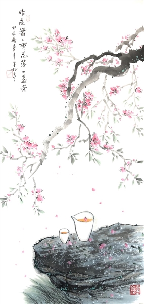 昨夜潇潇雨,花落一盏茶。 牛 力 绘