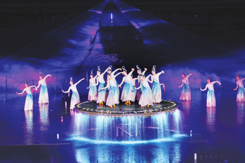 5月19日晚,太原市文商旅融合发展促消费活动启动仪式在晋阳湖剧场举行,会上发布四条精品旅游线路。图为线路四中的《如梦晋阳》水上实景演艺。 王韵菲 摄