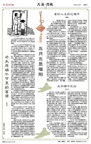 与大多地方的端午节一样,太原人过节都要包粽子,但在早年老太原人的端午节里,还有一样仅次于包粽子的习俗,就是挂菖蒲。