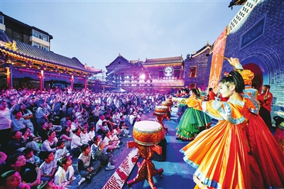端午假期,太原钟楼街推出“仲夏端阳 粽觅千年”主题活动,让市民游古街,赏民俗,一同感受传统文化与现代创意相交融的魅力。图为6月1日晚,众多市民在观看绛州鼓乐展演。
