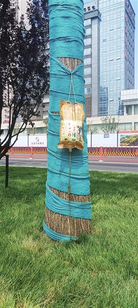 本报讯(记者 刘晓亮 文/摄)8月5日,记者在迎泽大街晋祠路——春居路沿线看到,许多新栽种的树木上挂着输液器和液体。这是怎么回事呢?市道路绿化养管中心工作人员表示,这就是在给树木补充营养,“大树营养快线”“成活助长液”“树木移栽输液”等能大大提升新栽树木的成活率,增强树木抗病能力。记者在下元公元时代城附近看到,路南的配套绿化已大体竣工,机非隔离带内、人行道上,包括原有的树木、新移栽的树木,在树干一米上下,都挂着一个塑料袋,塑料袋下方的导管连接着针管,插入树干下端,这新奇的装置吸引了不少行人的目光。记者仔细看包装袋上的说明,有的写着“为您解决树木衰弱复壮、根弱回芽、叶而不展、弱树无芽等问题”,有的写着“可提升成活率,高效补水补养,激活老弱树木生机,促进根系愈合与新芽萌发。”
